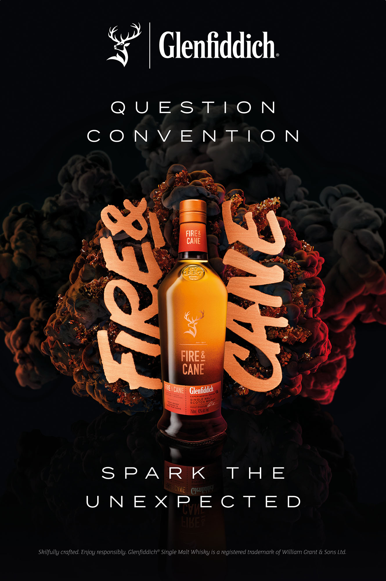 To launch Fire & Cane, a bold, smoky-sweet single malt in Glenfiddich’s experimental whisky series, we collaborated with creative agency Space to produce a visually striking drinks advertising campaign that challenges expectations and celebrates innovation in premium spirits branding.