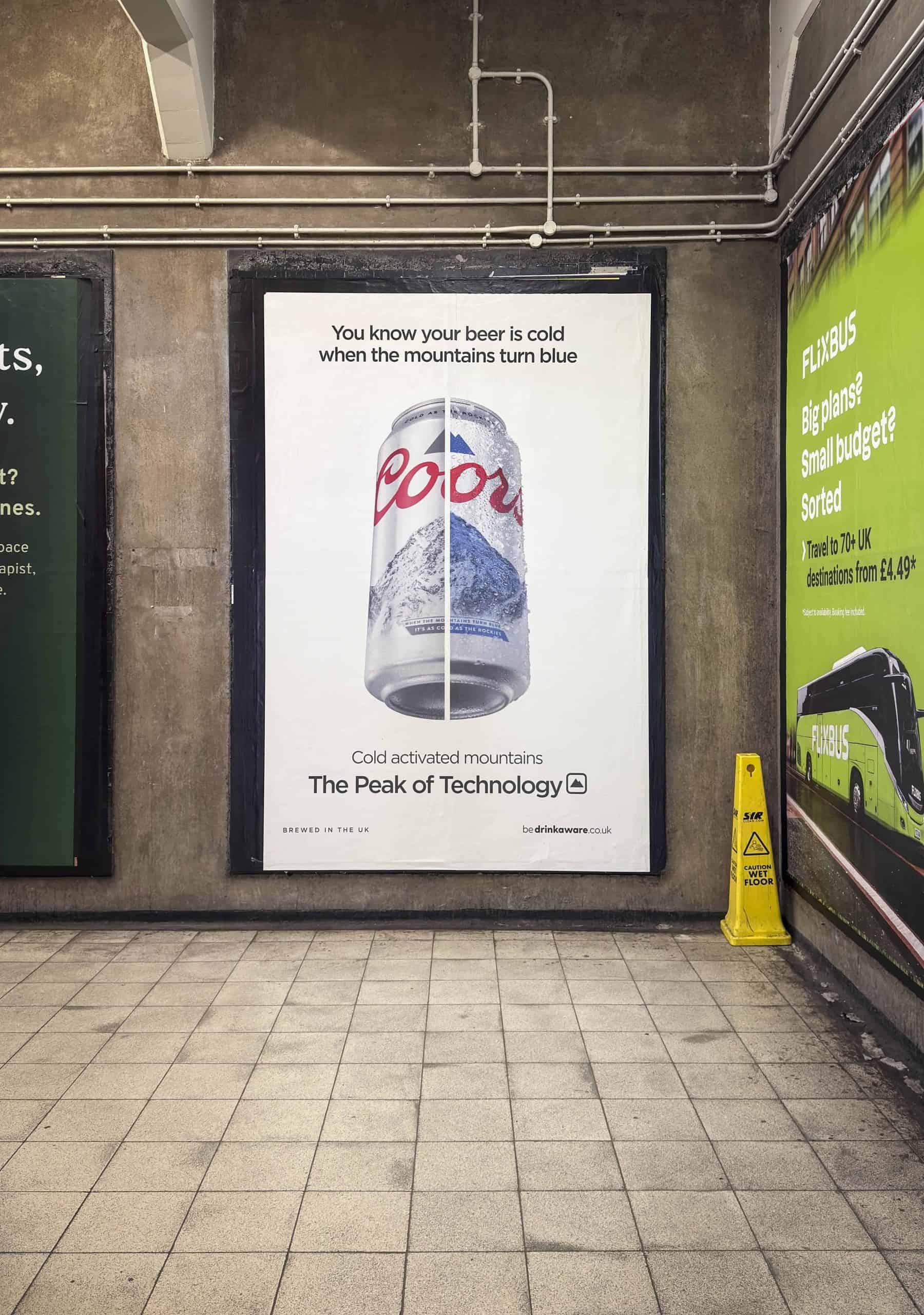 For this campaign, we partnered with Ogilvy London, Hogarth and Molson Coors to spotlight one of the drinks industry’s simplest yet most iconic product innovations: the cold-activated, thermochromatic label. When the mountains on the can or bottle turn blue, you know your beer is at the perfect chilled temperature. That’s it, and that’s the brilliance.