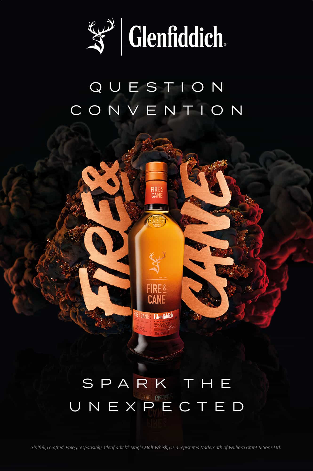 Glenfiddich wanted to challenge their audience’s perspective of how bold a whisky can be with Fire & Cane, a new special malt whisky in their experimental series. To illustrate this, we worked with Space to create strong imagery consistent with the message: "Question convention, spark the unexpected." The campaign’s hero pieces were the main poster and 20” television commercial. They were accompanied by a variety of social media content including Facebook Canvas, Instagram Stories and Boomerangs.