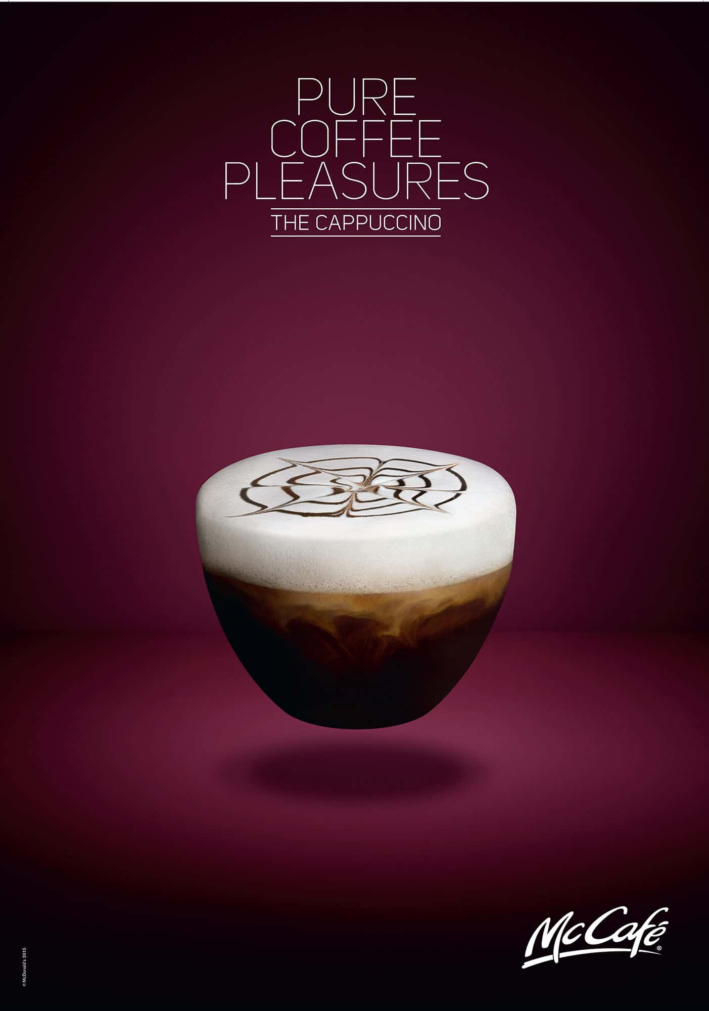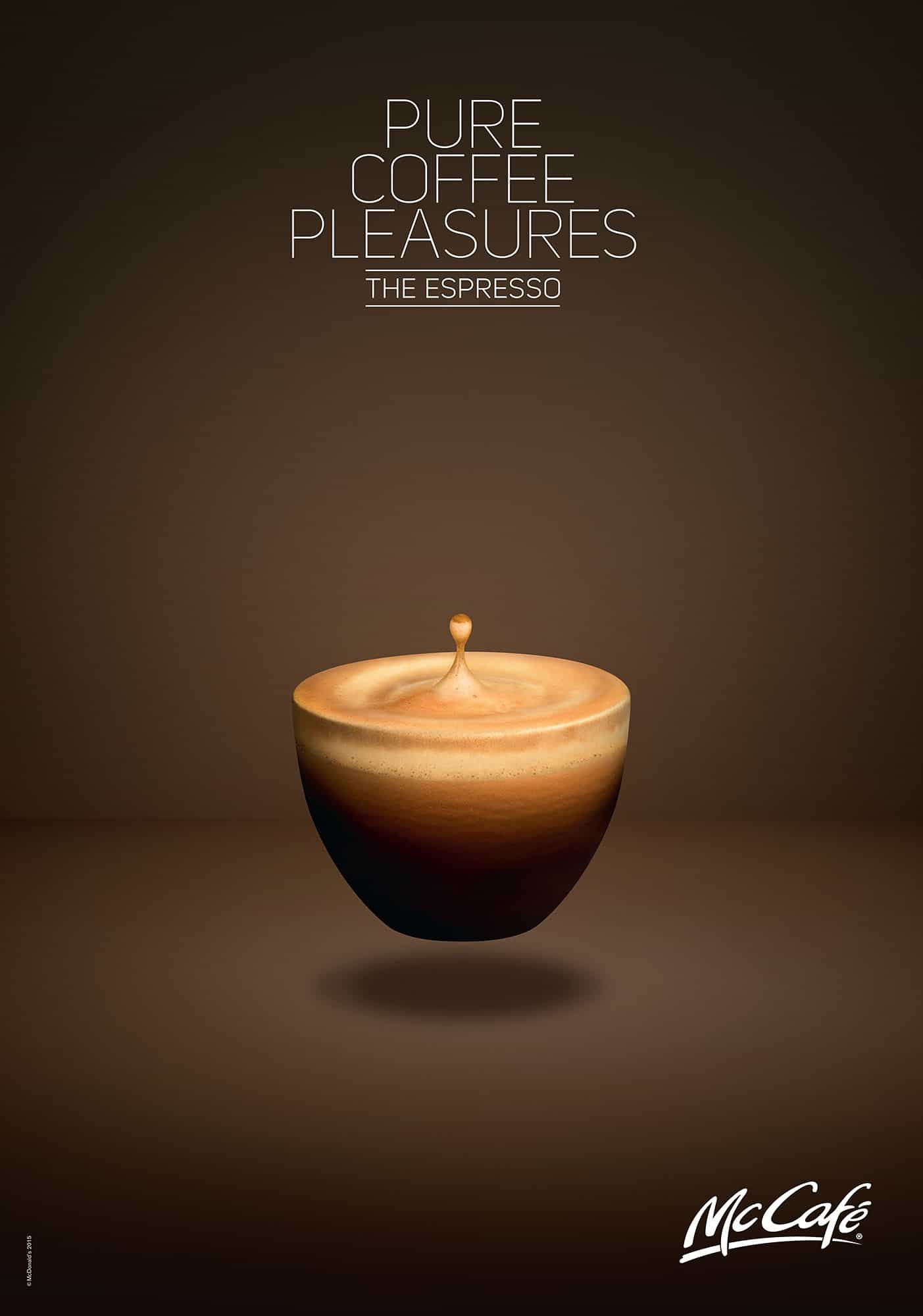 For global fast food chain McDonald’s Jonathan shot a series of drinks in the McCafé product line. To demonstrate the beautiful colours, and quality of the drinks, Jonathan took away the glasses and cups, leaving only the contents of the drinks floating just above the surface. There are images of the caramel latte, cappuccino, latte macchiato and espresso.