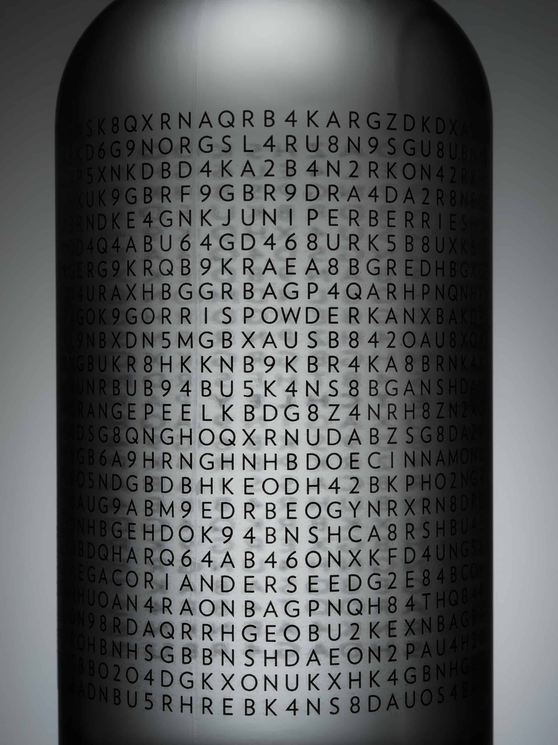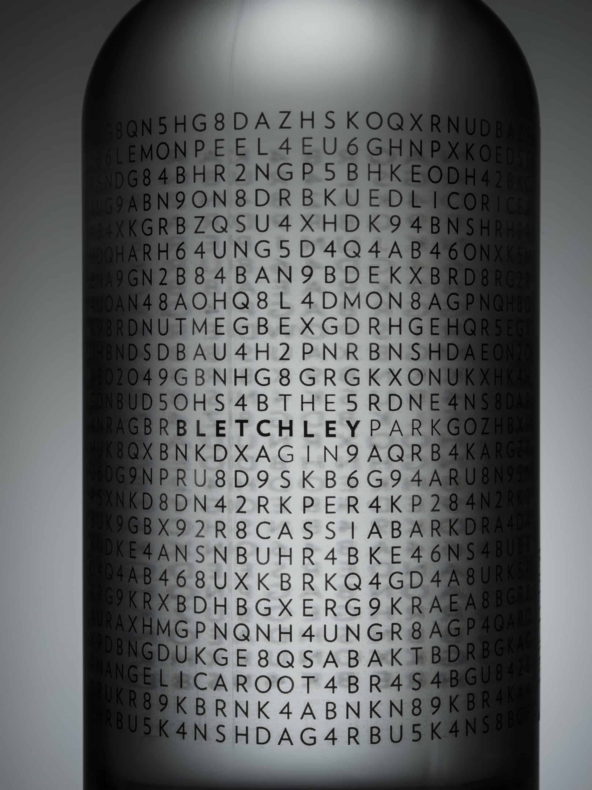 When Rose Design was asked to design the new packaging for Bletchley Park Gin, they asked Jonathan to shoot the bottle for POS and promotional materials. Bletchley Park is where Alan Turing made history with his code in WWII. A jumble of coded lettering is written on the bottle, which also conceals the names of the key ingredients and botanicals of the gin.