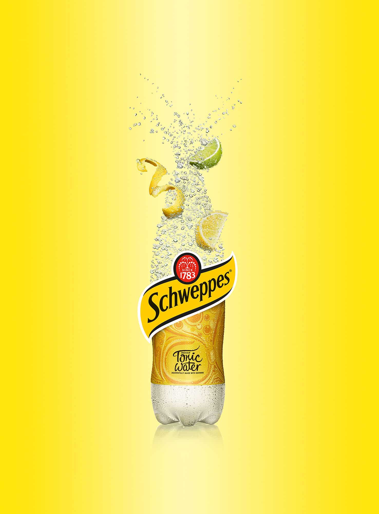 An advertising still life campaign capturing the energy and freshness of Schweppes’ carbonated mixers, showcasing the effervescence and flavour notes of their mixer range – Tonic Water, Elderflower Tonic and Bitter lemon. Working with real bubbles, fresh citrus, and vibrant gradients, we crafted dynamic images designed for key visuals and POS; a study in precision liquid photography, carbonation and controlled studio lighting.