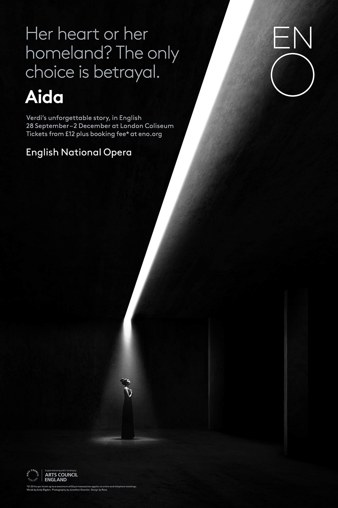 To accompany their production of Aida, the English National Opera wanted strong visuals to captivate new audiences and connect with existing opera aficionados. Rose commissioned us to create various marketing materials. The hero piece was a still image including used for promotional posters, the opera’s programme and website, and was followed by a 30” cinema commercial.