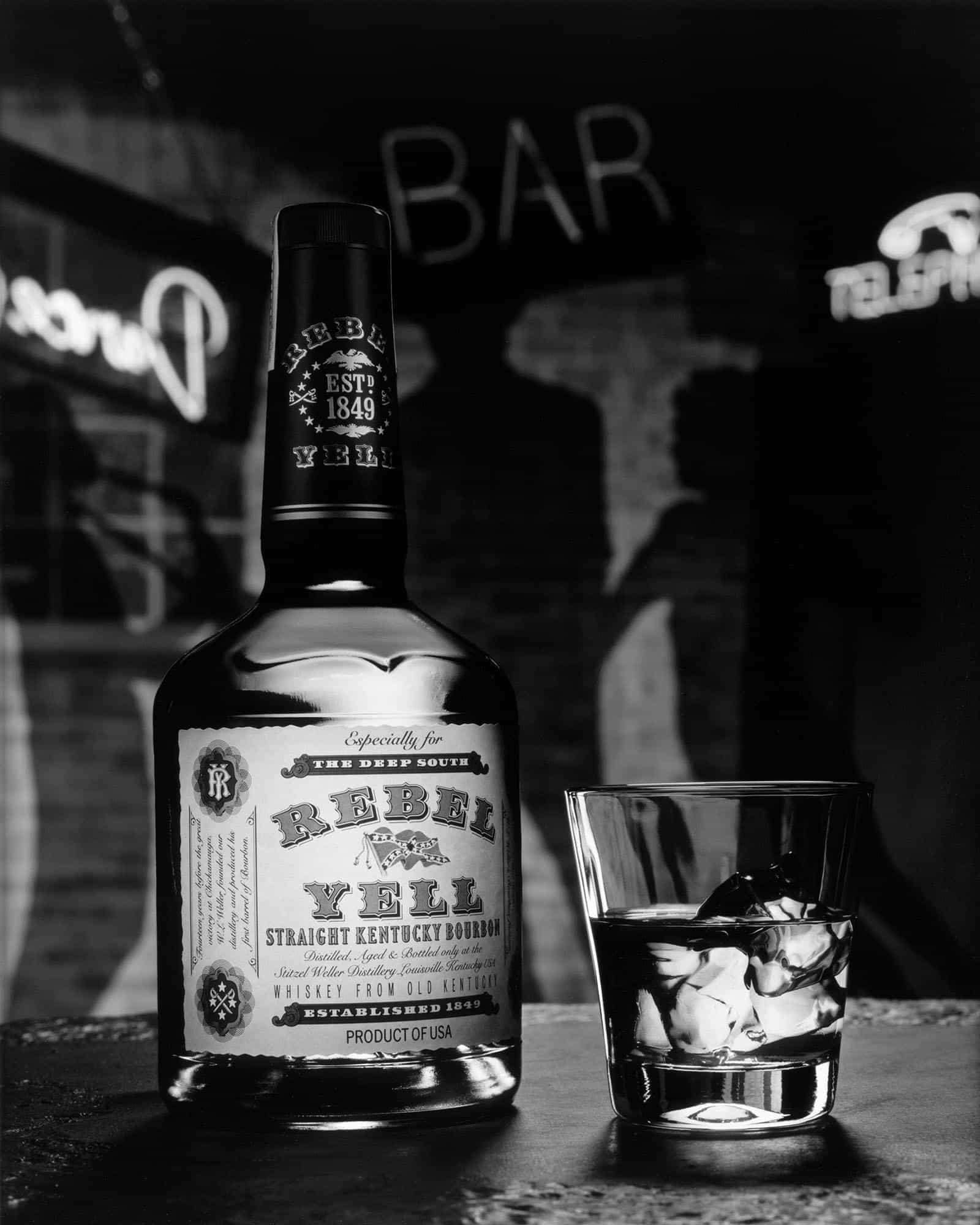 A pair of black-and-white studio shots for George Dickel Tennessee Whiskey and Rebel Yell Kentucky Bourbon. This project explored whiskey heritage through cinematic drinks photography, capturing craft distilling, American whiskey storytelling, and the rich visual texture of bourbon advertising.
