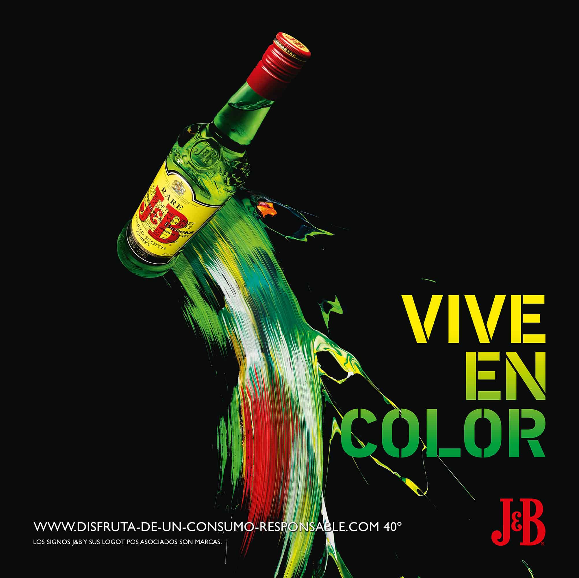 A vibrant, painterly campaign celebrating J&B’s colourful character, shot entirely in-camera with real paint textures and bold lighting to create energy, movement, and standout shelf impact.