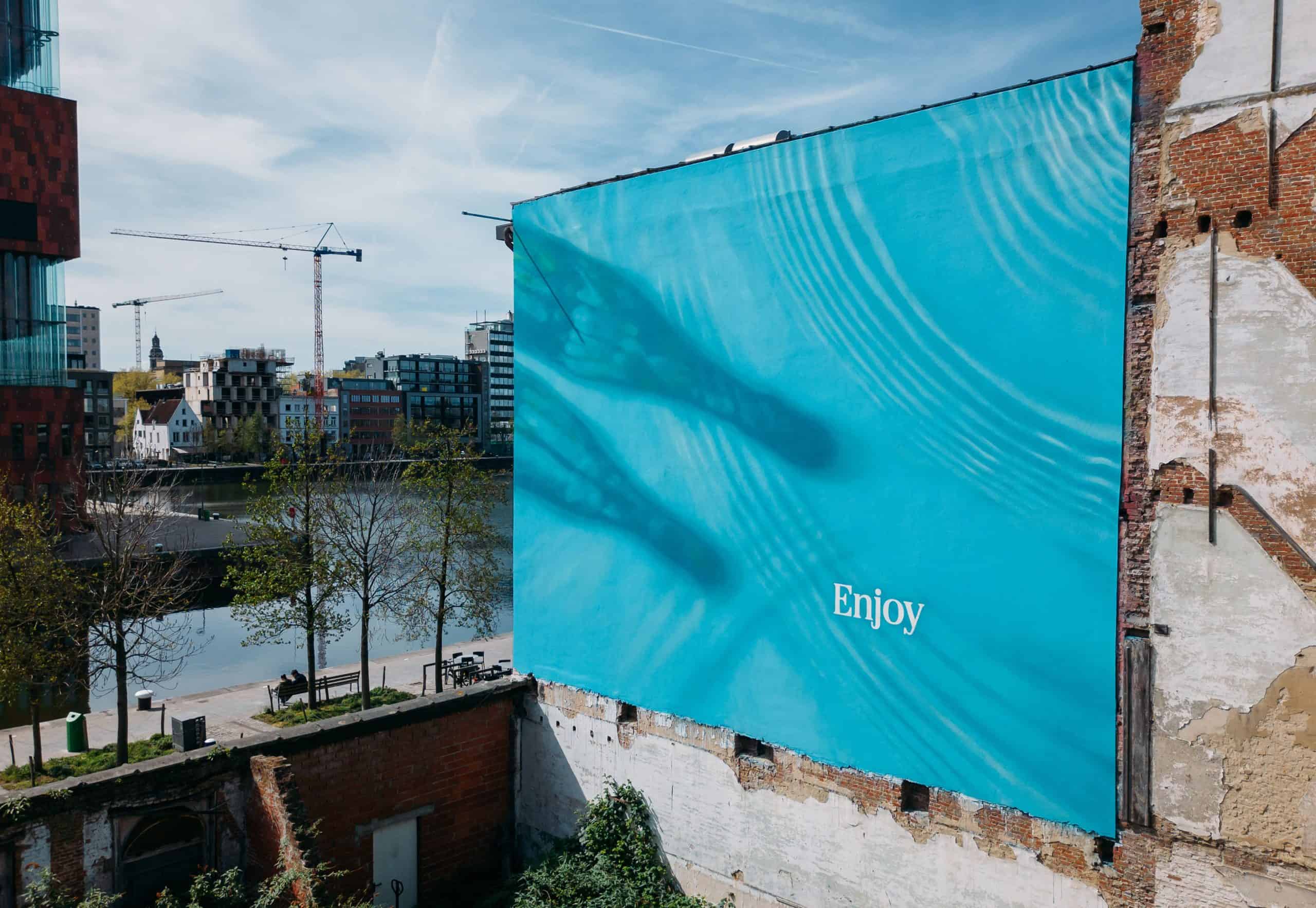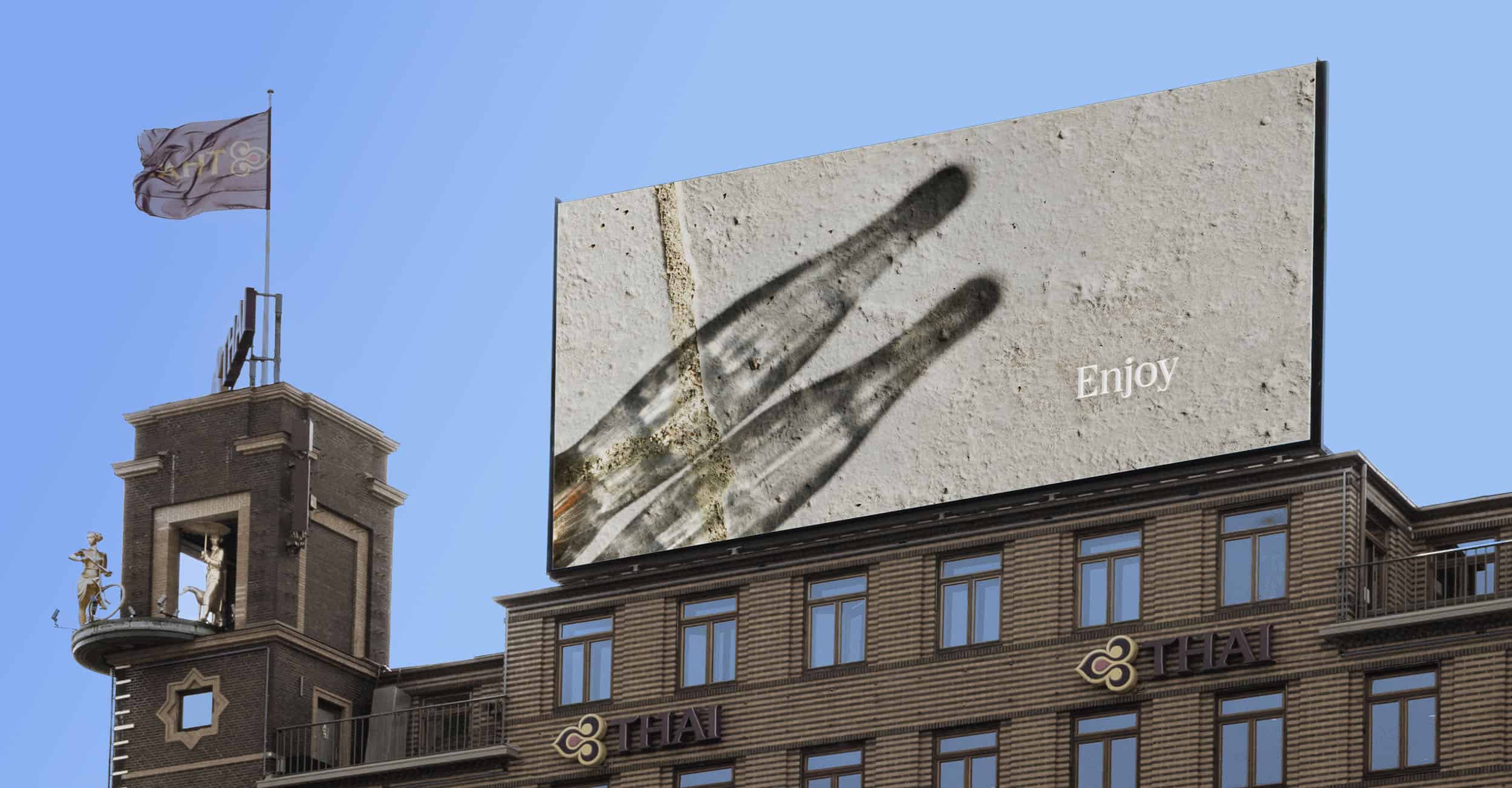 In an age of sensory overload, this minimalist visual language speaks volumes. No logos. No slogans. Just the unmistakable shape of a bottle and a single word in the final out-of-home execution: Enjoy. It’s a quiet yet powerful statement in beverage marketing—an invitation to feel rather than be told.