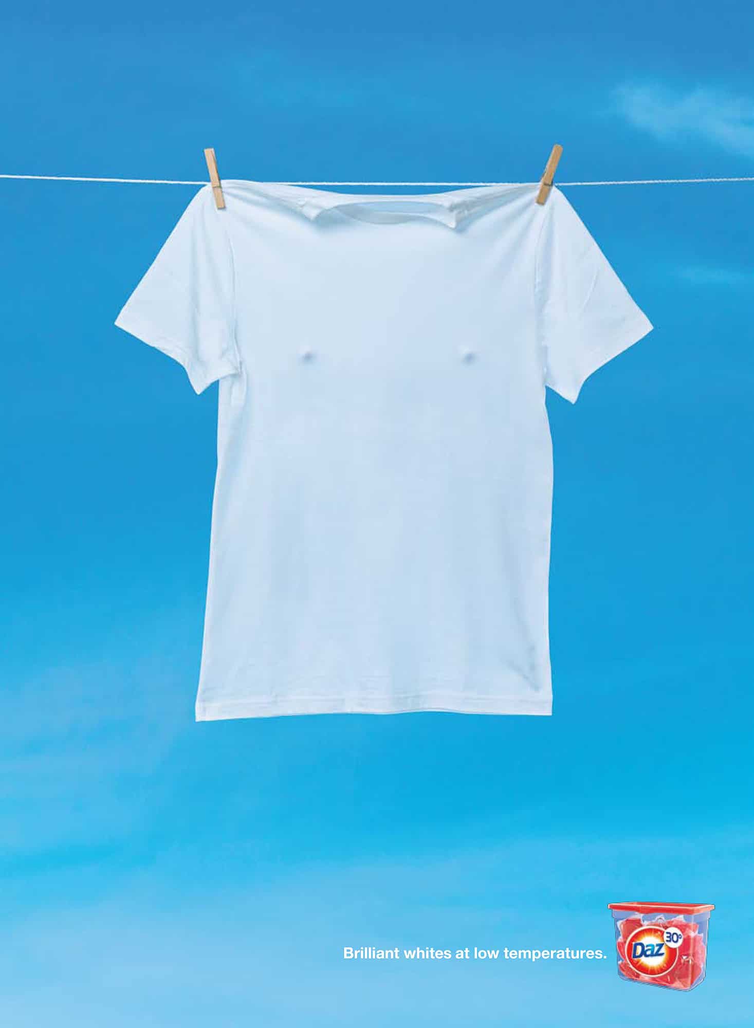 Jonathan’s new advertising campaign for Daz, entitled ‘Nipples’ has won a ‘Campaign Big Award’ & a bronze ‘Creative Circle’ award, as well as being listed as one of the top 10 posters in 2009, by Campaign magazine. The still life image of a white T-shirt on a line demonstrates the cleanliness obtainable with a cool wash.