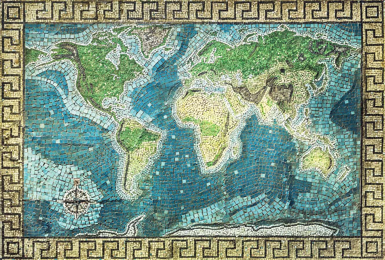In an ever changing world some traditions and forms of art have endured the test of time. Jonathan created this beautiful modern day mosaic map that combines both the modernisation of the globe with the ancient methods of creating robust imagery using small tiles – though the map would have obviously looked very different if the Romans had made it.