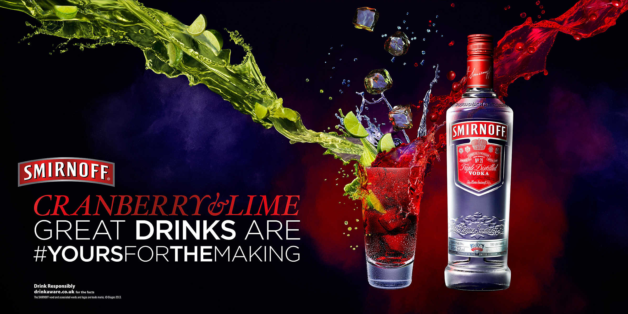 We created a lot of mess shooting our hi-speed liquid photography with JWT on this Smirnoff Cranberry & Lime ad. It has been great to see it out and about.