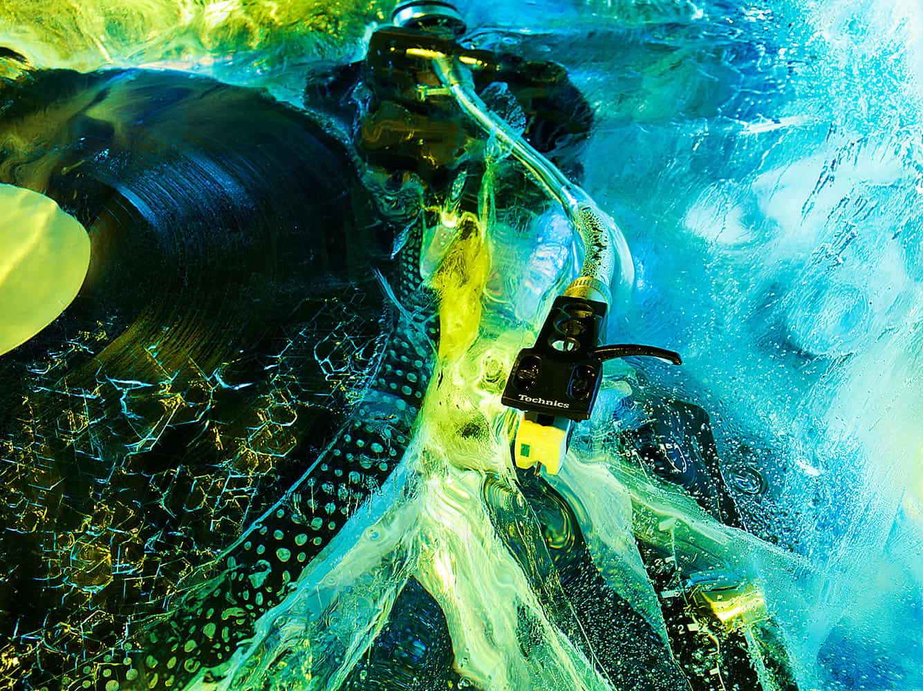 The music deck and other items where frozen in blocks of ice and Jonathan’s creative lighting created these slick and cool images.